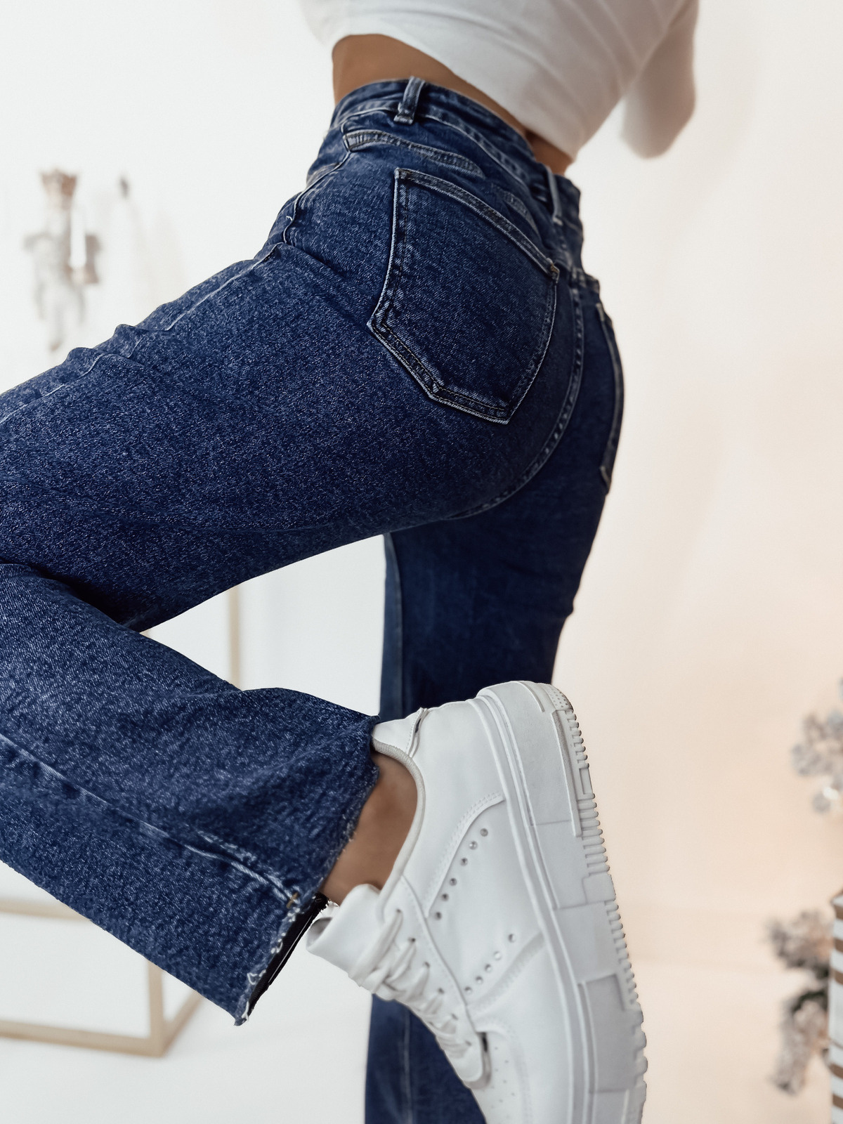 SPODNIE JEANSOWE Z SZEROKĄ NOGAWKĄ I SZARPANIEM- GRANATOWE