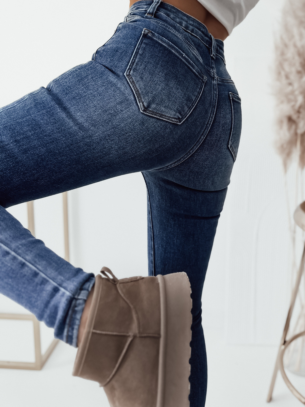 CIEMNE SPODNIE JEANSOWE PUSH UP Z PRZETARCIAMI- BARDZO WYSOKI STAN