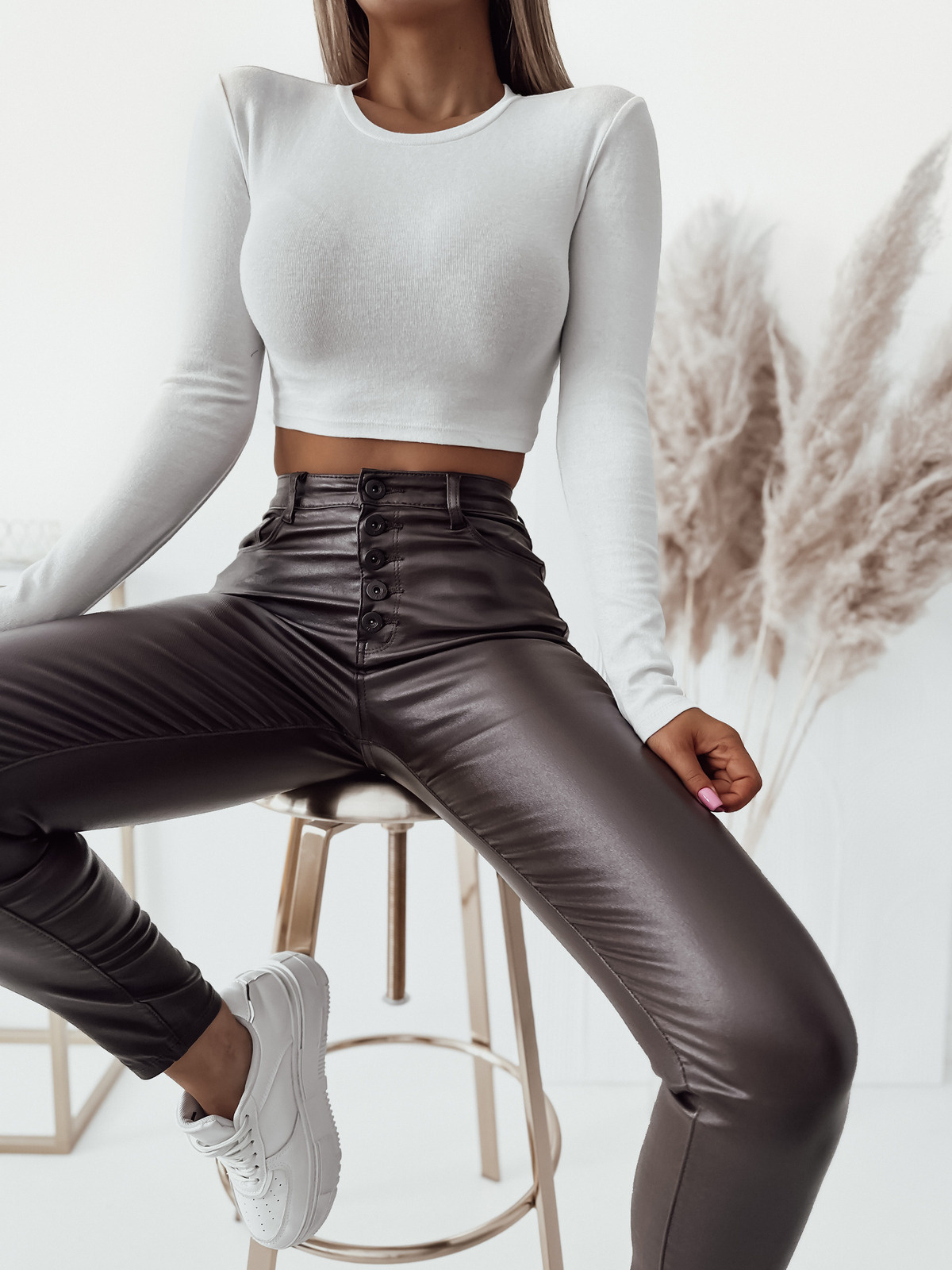 SPODNIE WOSKOWANE Z GUZIKAMI I WYSOKIM STANEM- CIEMNY BRĄZ