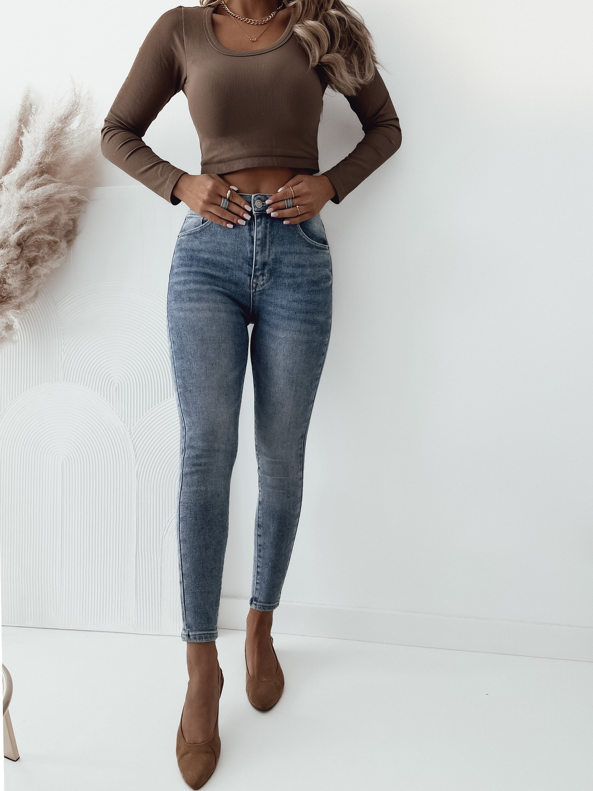 JASNO NIEBIESKIE SPODNIE JEANSOWE Z WYSOKIM STANEM