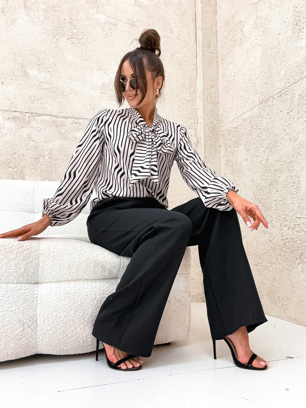 ELEGANCKA BLUZKA Z WIĄZANIEM POD SZYJĄ- BEŻOWA