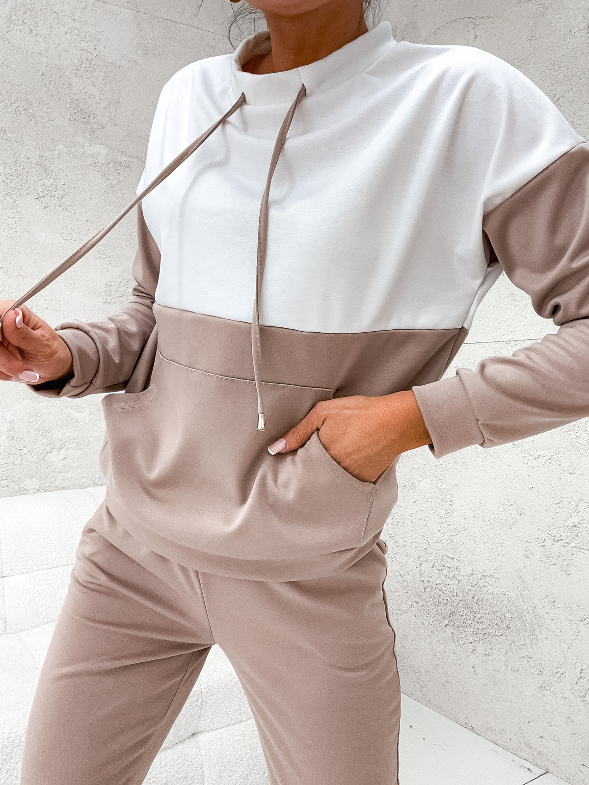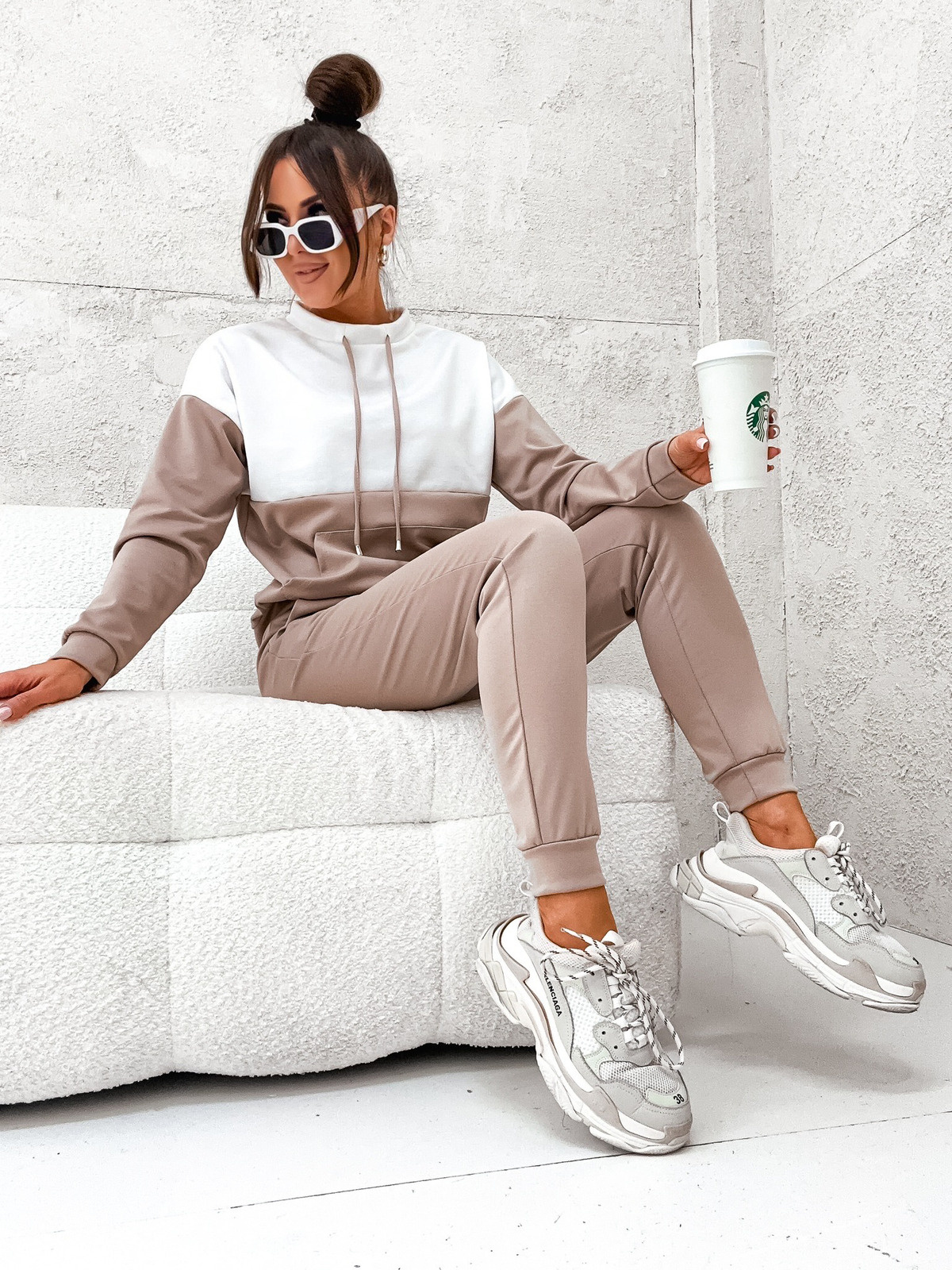 BEŻOWY KOMPLET DRESOWY BLUZA ZE SZNURKAMI+ SPODNIE