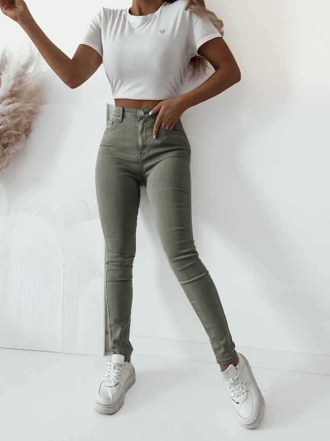 DOPASOWANE SPODNIE Z WYSOKIM STANEM PUSH UP- ZIELONE