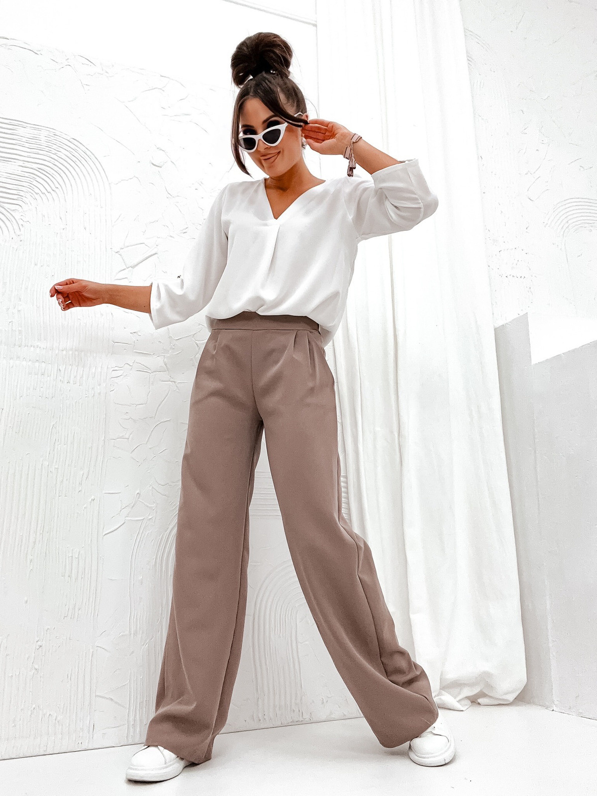 SPODNIE KULOTY Z SZEROKIMI NOGAWKAMI- CAPPUCCINO