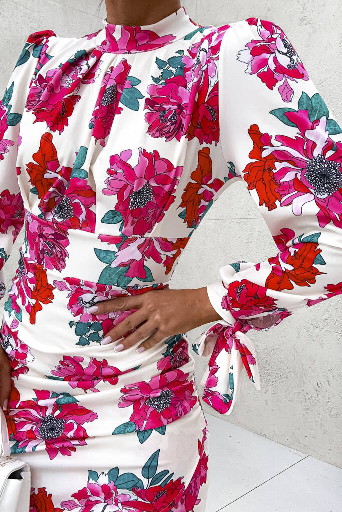 WZORZYSTA SUKIENKA W KWIATOWY WZÓR- ECRU