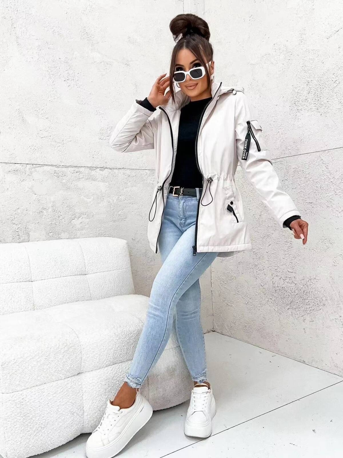 KURTKA PRZERJŚCIOWA PARKA Z KAPTUREM- JASNY BEŻ