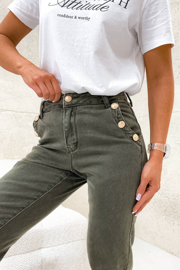 SPODNIE MOM FIT Z OZDOBNYMI GUZIKAMI NA KIESZENIACH - ZIELONE