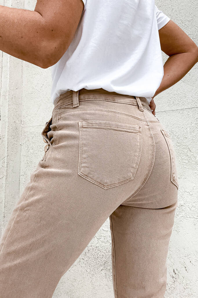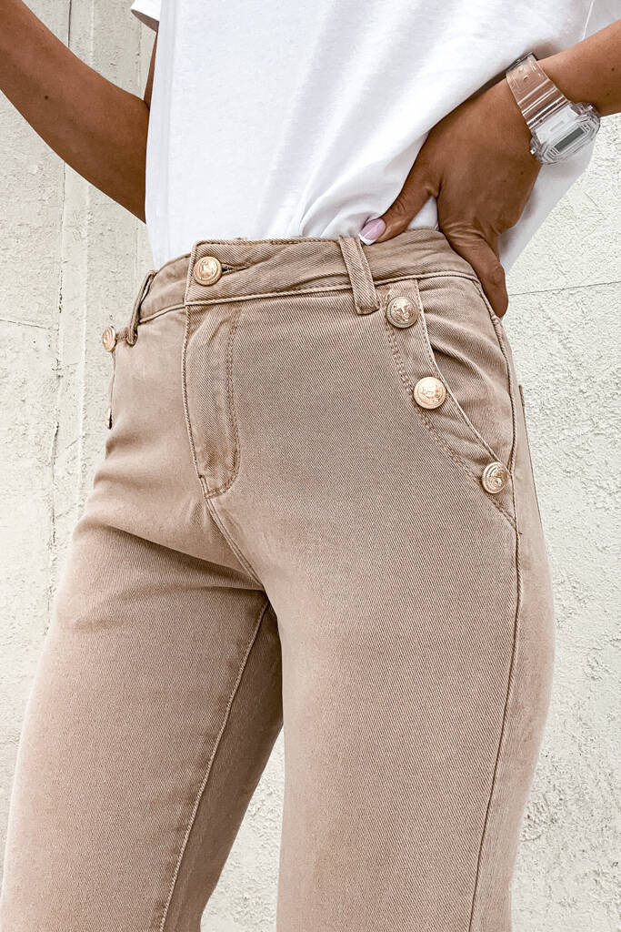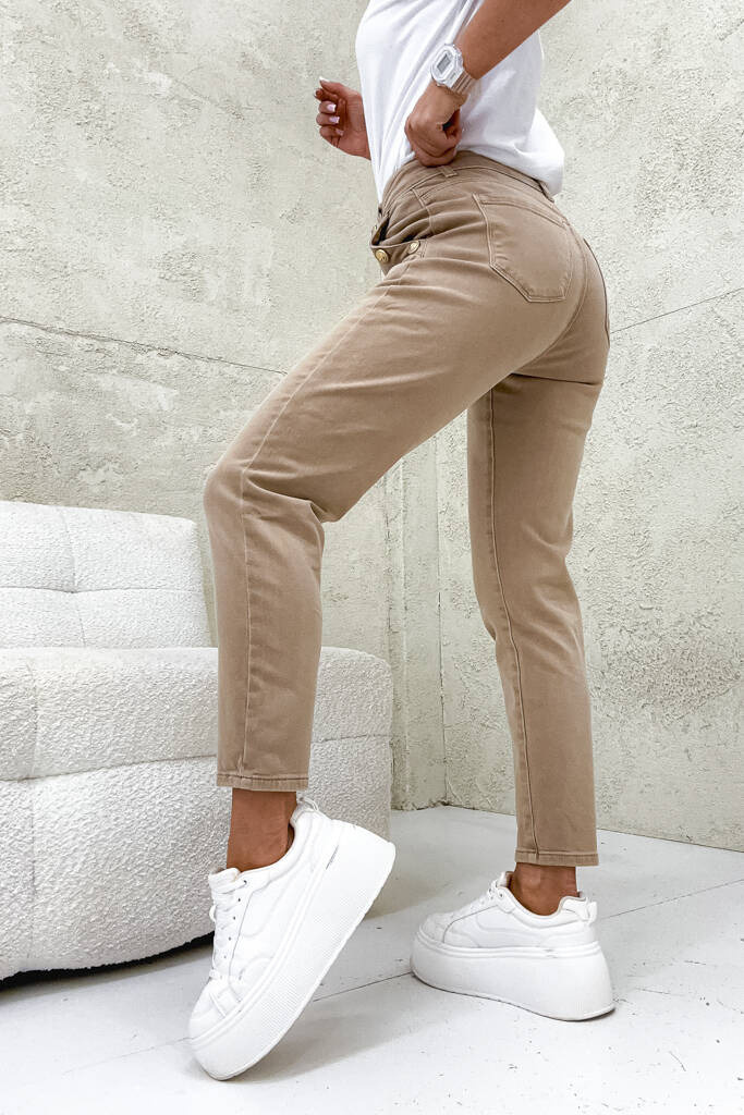 SPODNIE MOM FIT Z OZDOBNYMI GUZIKAMI NA KIESZENIACH -BEŻOWE