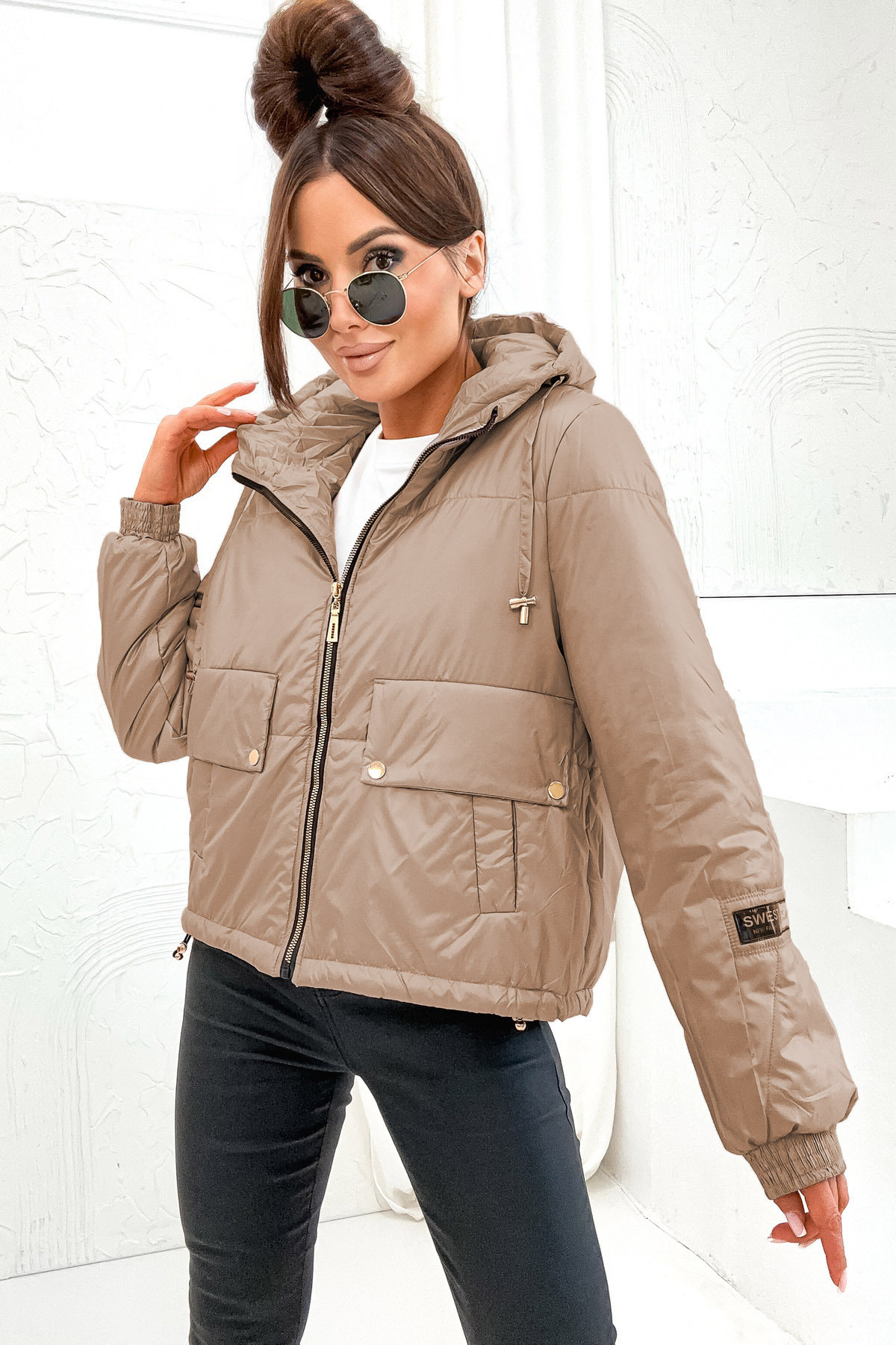 KURTKA ASYMETRYCZNA ZE ZŁOTYMI ELEMENTAMI- CIEMNO BEŻOWA