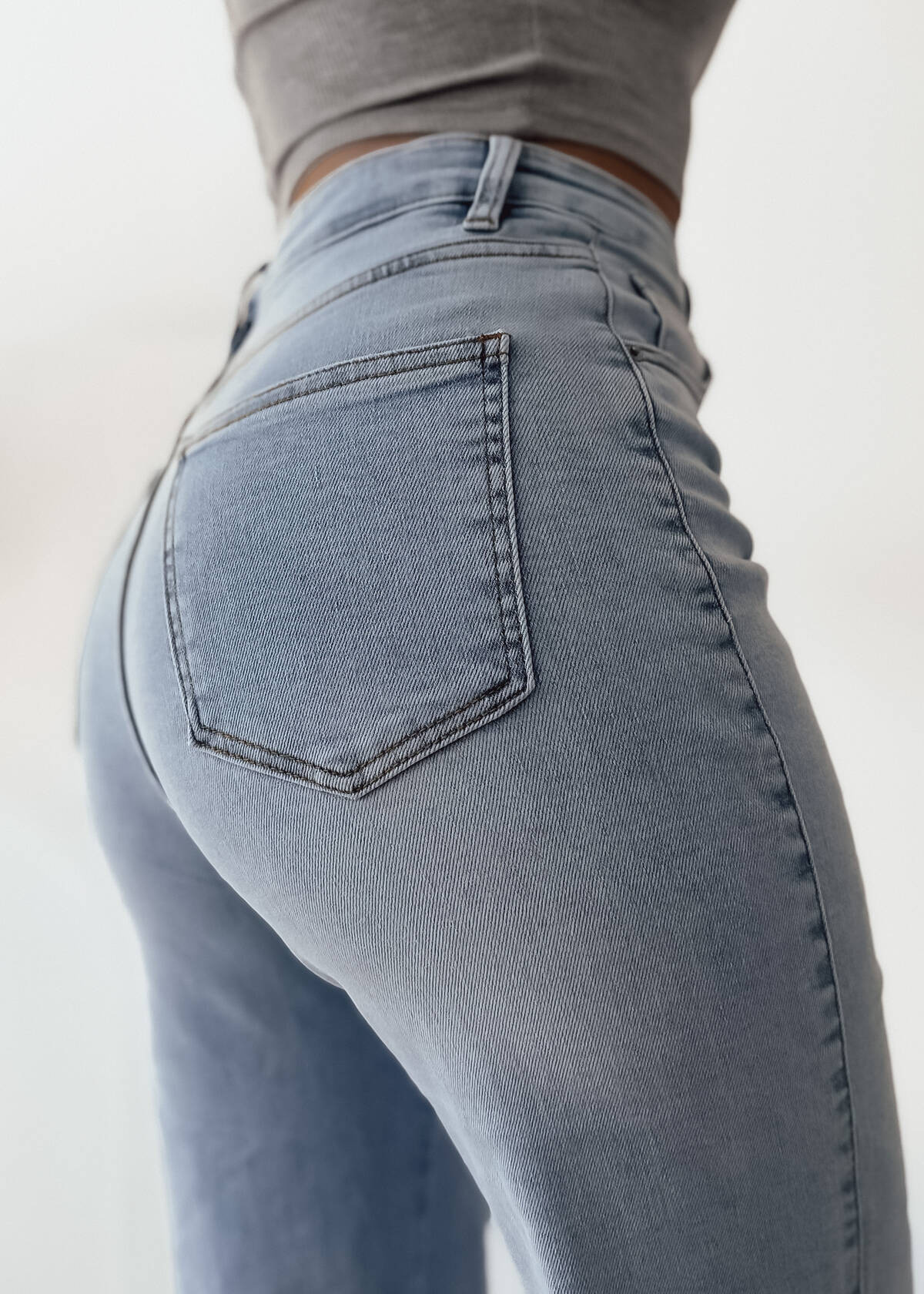 JASNE SPODNIE JEANSOWE Z ROZCIĘCIEM NA NOGAWCE