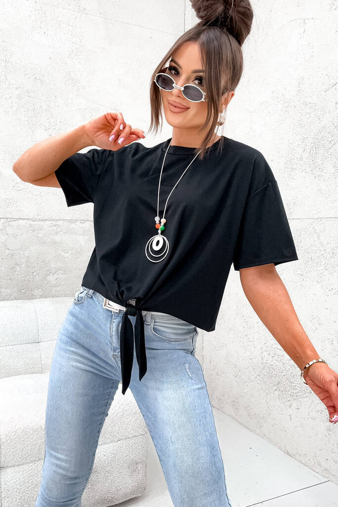 BLUZKA Z WIĄZANIEM NA DOLE + WISIOREK- CZARNA