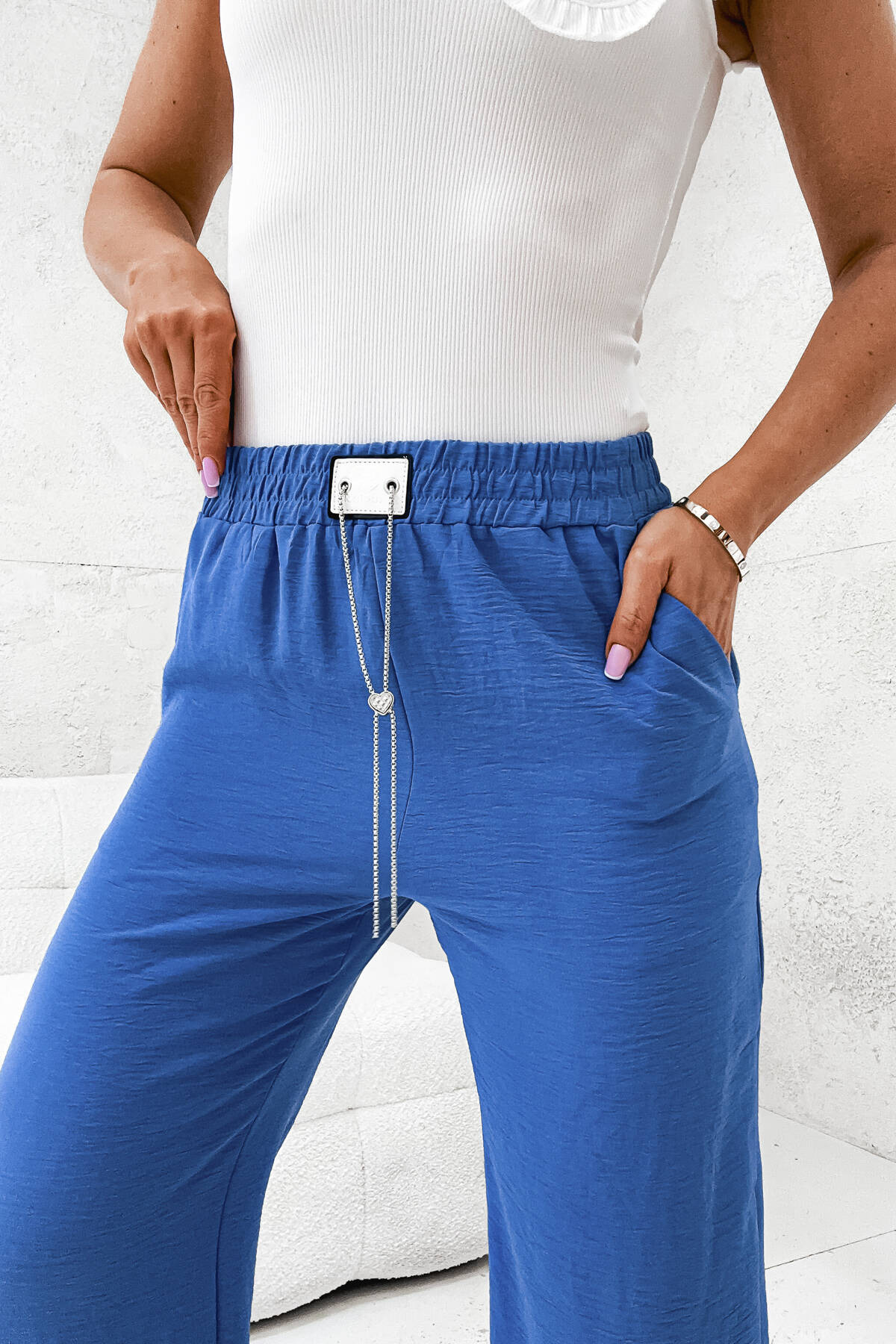 SPODNIE MATERIAŁOWE Z SZEROKĄ NOGAWKĄ I ŁAŃCUSZKIEM W PASIE- NIEBIESKIE