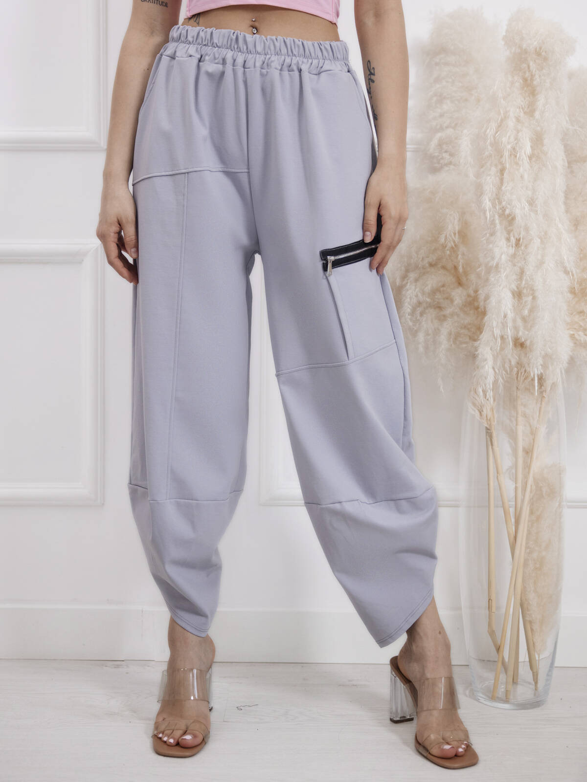 SPODNIE DRESOWE SZEROKIE Z ZAMKIEM NA NOGAWCE- SZARE