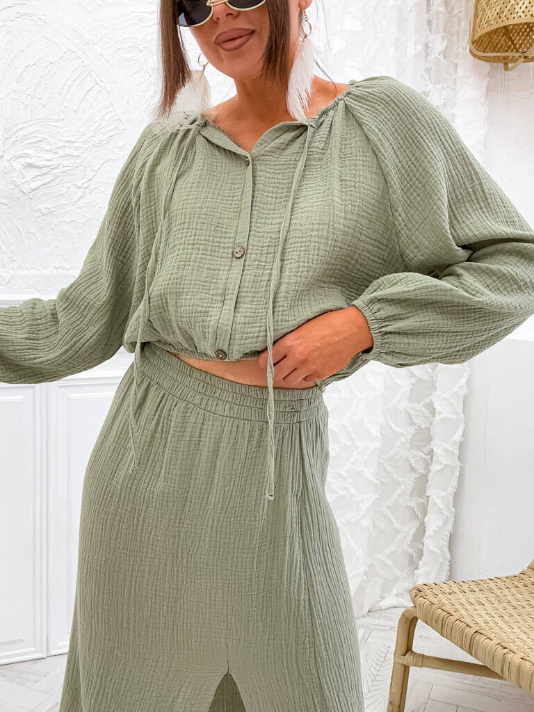KOMPLET BAWEŁNIANY BLUZKA+ SPÓDNICA- ZIELONA