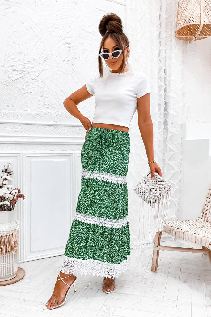 SPÓDNICA W KWIATY Z KORONKOWYMI WSTAWKAMI- ZIELONA