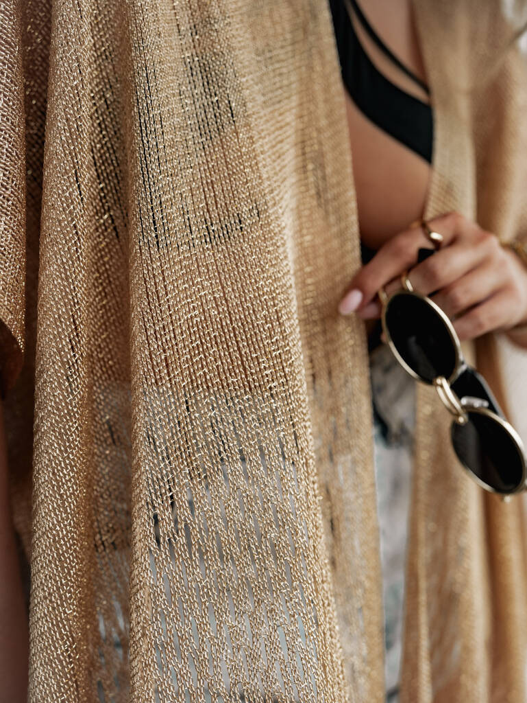 AŻUROWA NARZUTA Z BŁYSZCZĄCĄ NITKĄ- ZŁOTA