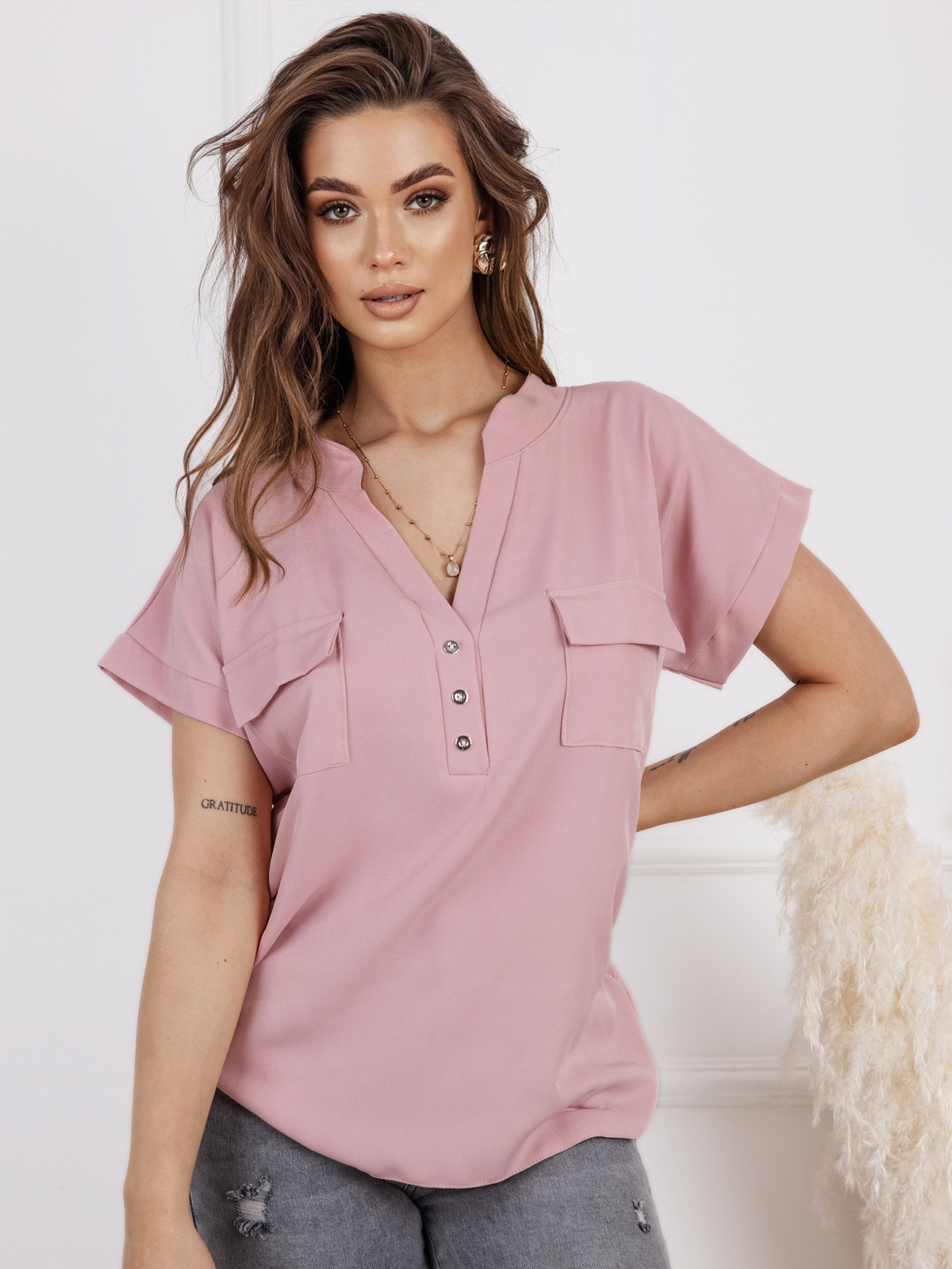 BLUZKA KOSZULOWA Z GUZIKAMI I KIESZONKAMI- PUDROWY RÓŻ