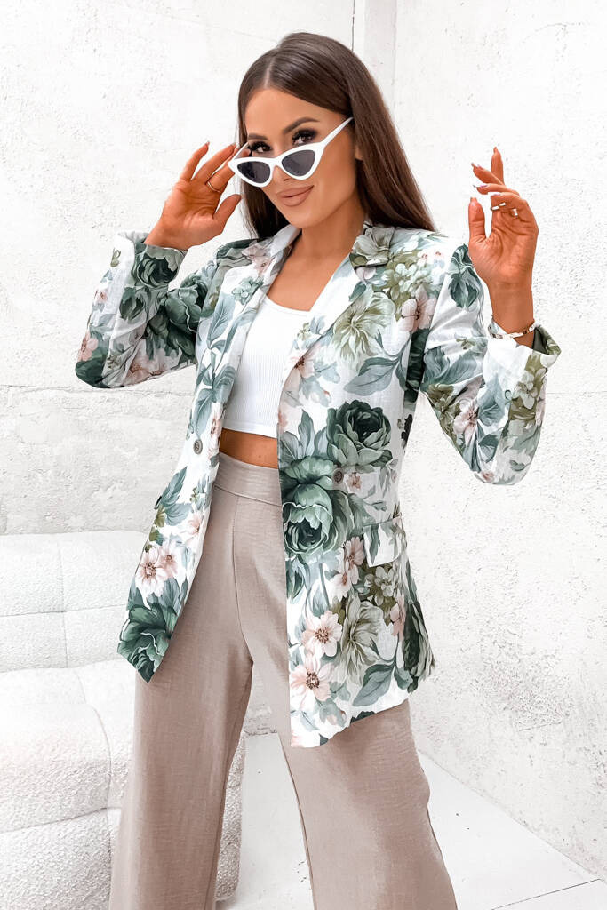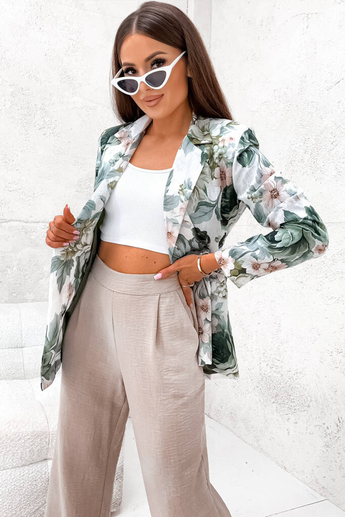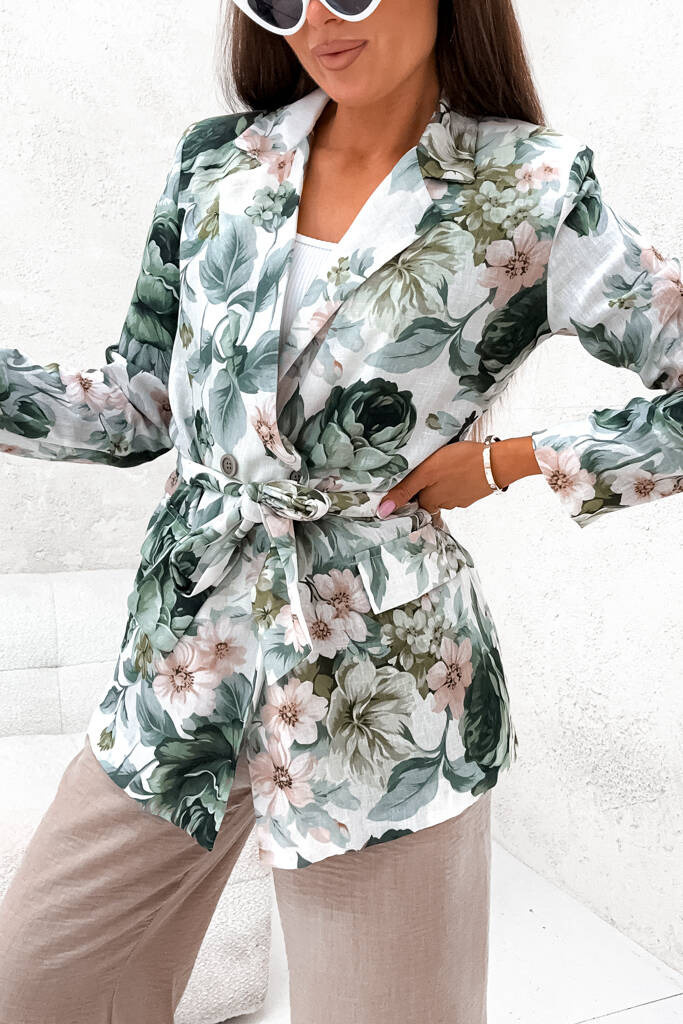 KOMPLET MARYNARKA WIĄZANA+ SPODNIE- ZIELONY