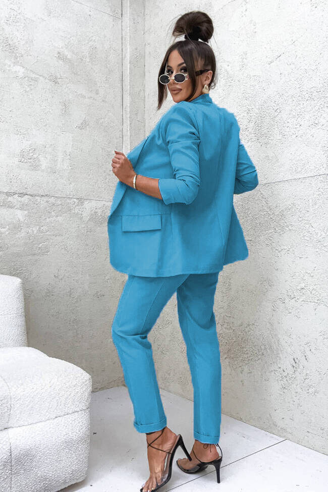 CIEMNO NIEBIESKI KOMPLET MARYNARKA+ SPODNIE