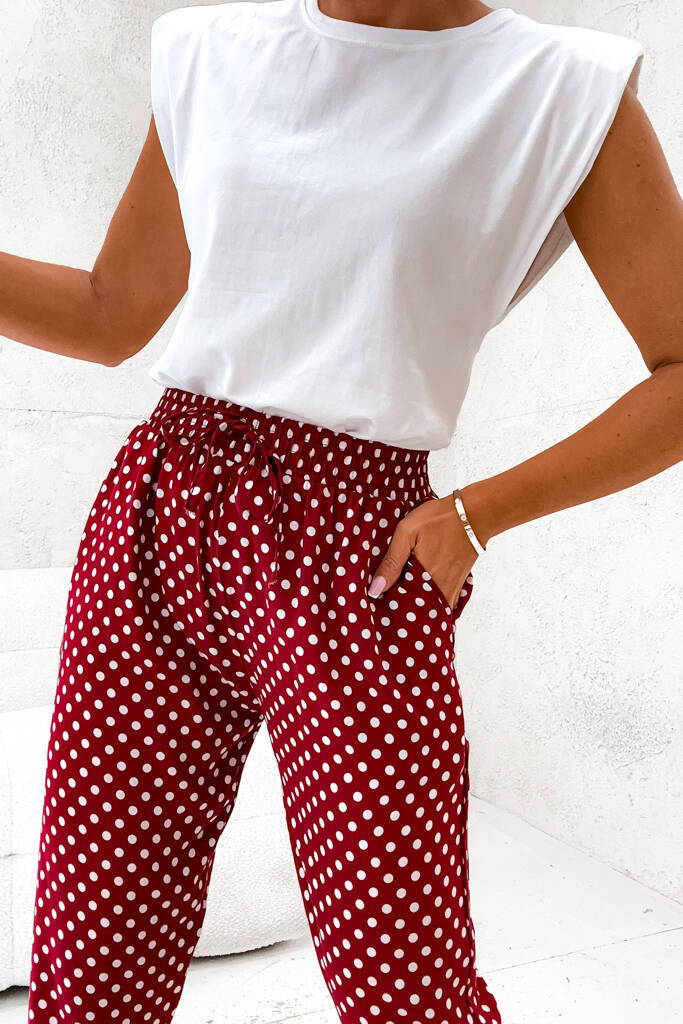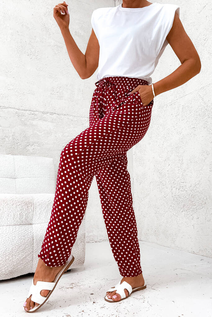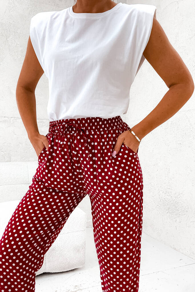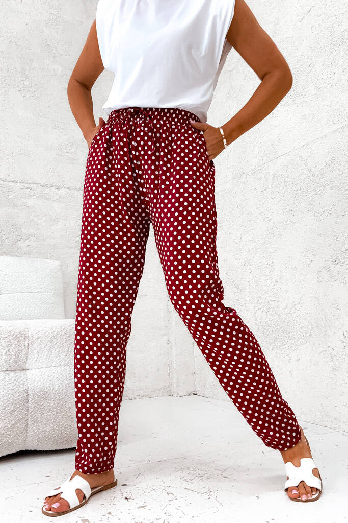 BAWEŁNIANE SPODNIE W KROPKI- BORDOWE