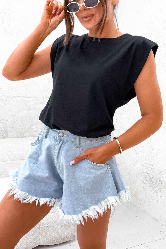 T-SHIRT BLUZKA Z PODUSZKAMI NA RAMIONACH- CZARNA