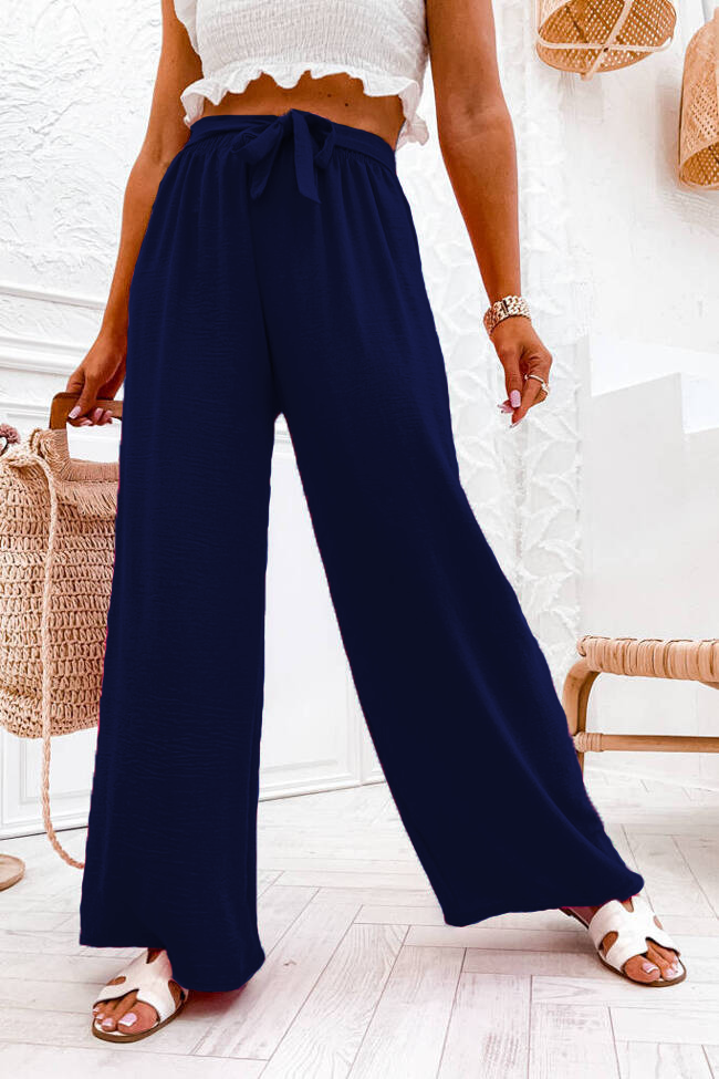 SPODNIE SZEROKIE Z GUMĄ I WIĄZANIEM W PASIE- GRANATOWE