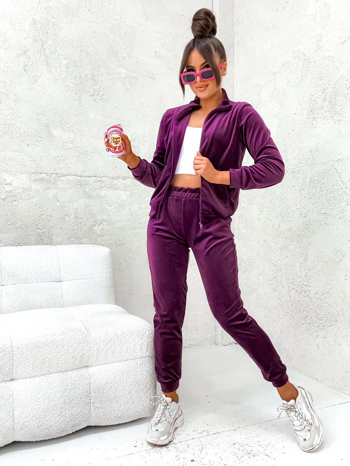 WELUROWY KOMPLET DRESOWY BLUZA+ SPODNIE- ŚLIWKOWY