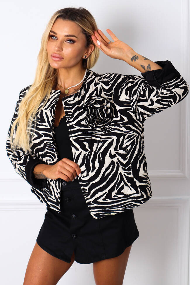 KURTKA BOMBERKA ZEBRA Z DOPINANYM KWIATEM
