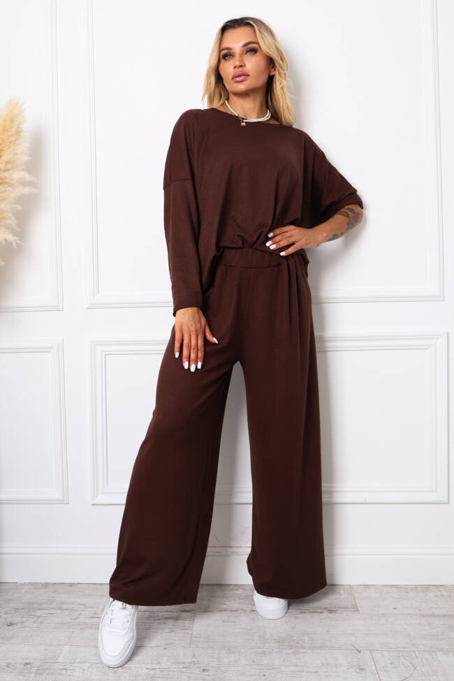 SPODNIE DZIANINOWE Z SZEROKIMI NOGAWKAMI- BRĄZOWE