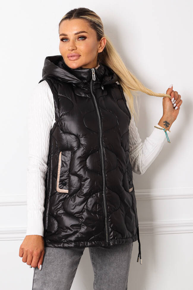 CZARNA PIKOWANA KAMIZELKA ZE ŚCIĄGACZAMI PO BOKACH
