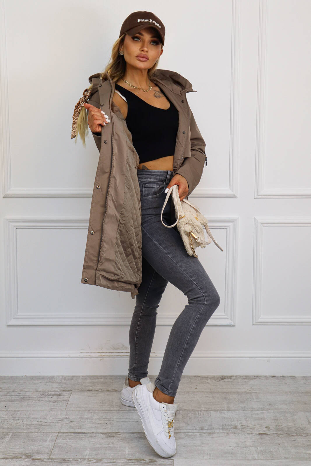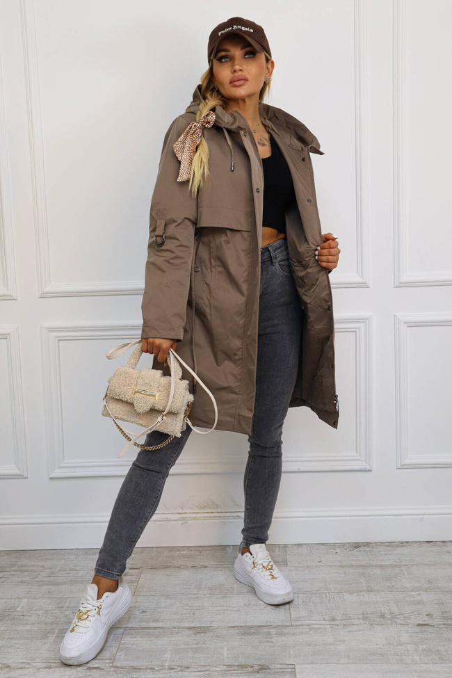 BRĄZOWA DŁUGA KURTKA PARKA PRZEJŚCIOWA