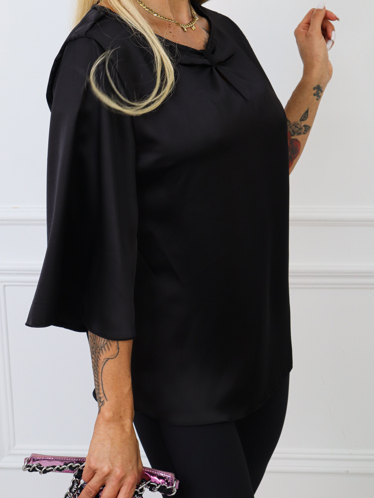 BLUZKA SATYNOWA Z ROZSZERZANYMI RĘKAWAMI- CZARNA