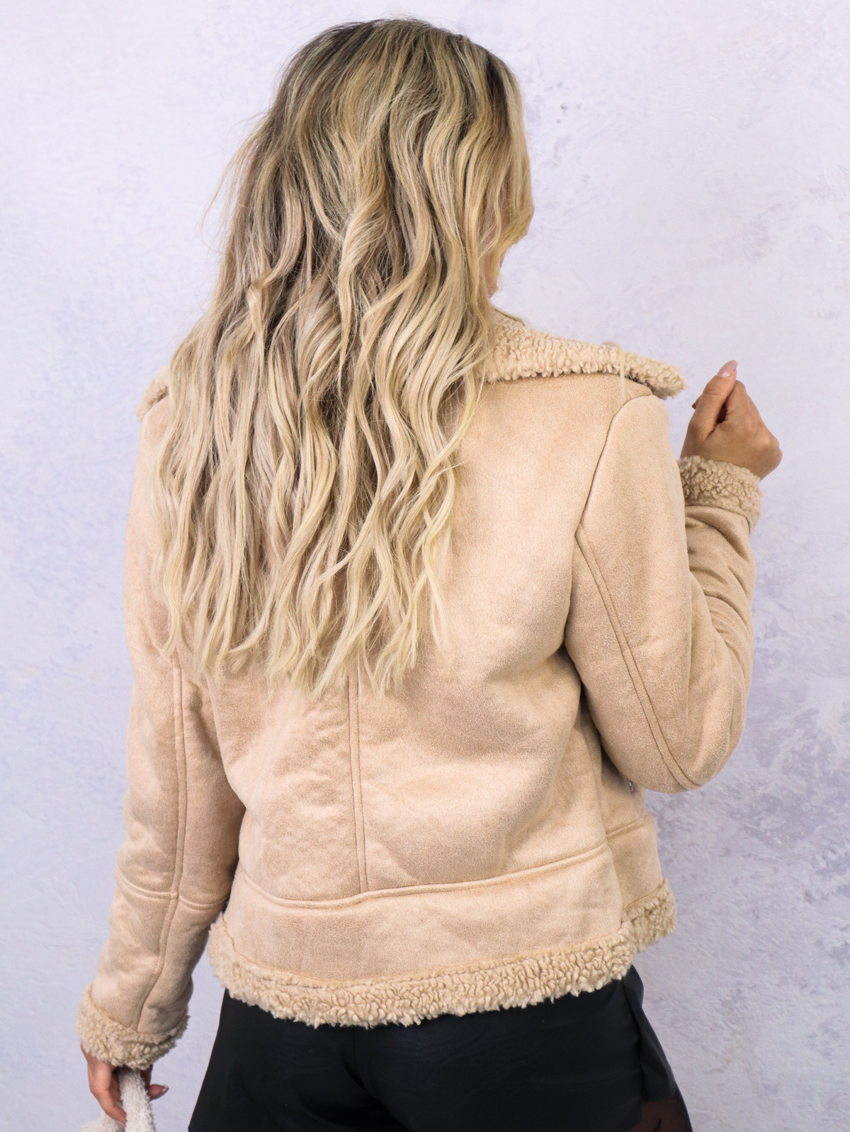 ZAMSZOWA KURTKA Z KOŻUCHEM- CIEMNY BEŻ