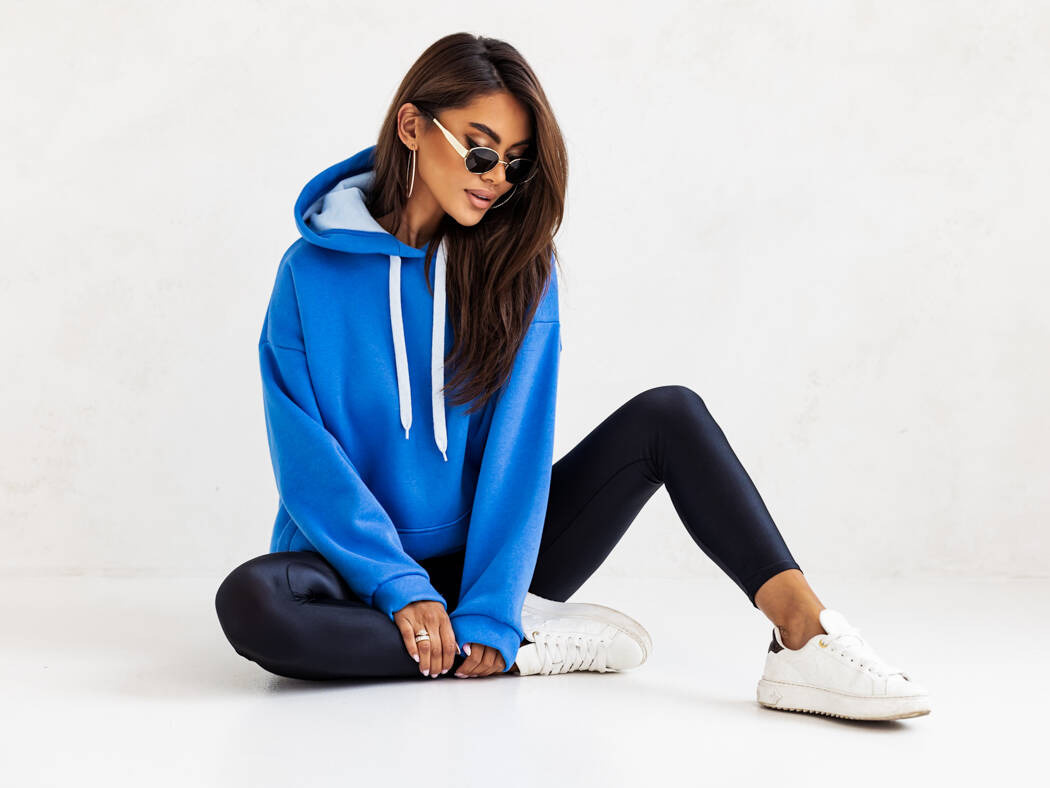 CIEPŁA BLUZA OVERSIZE Z KAPTUREM I ŚCIĄGACZEM-NIEBIESKA