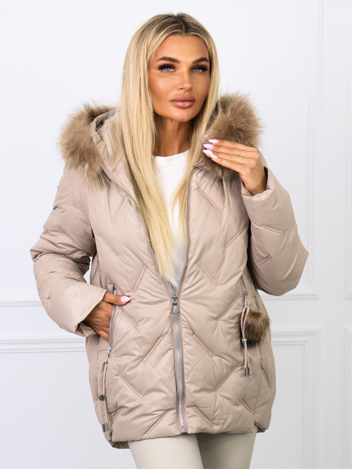 KURTKA PIKOWANA Z FUTERKIEM I OZDOBNYM BRELOKIEM- BRĄZ