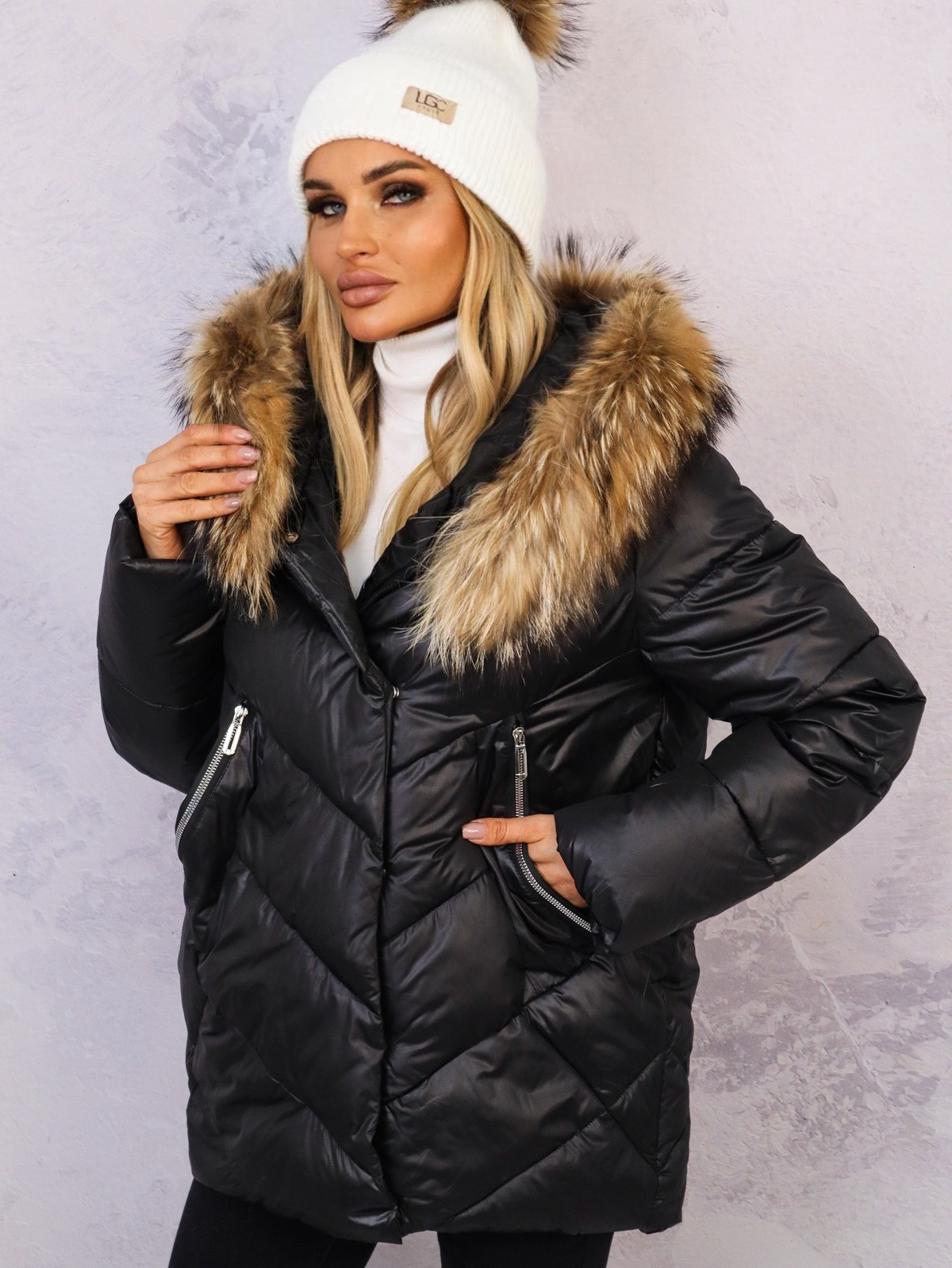 KURTKA ASYMETRYCZNA Z FUTERKIEM I KIESZENIAMI NA ZAMKI- CZARNA