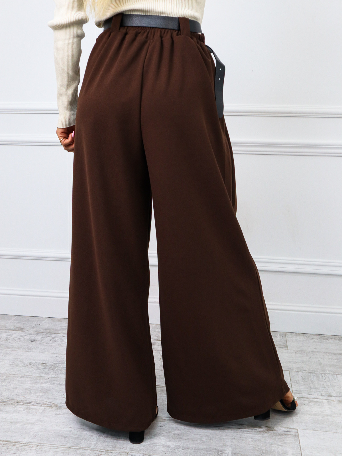 SPODNIE MATERIAŁOWE Z SZEROKIMI NOGAWKAMI+ PASEK- BRĄZOWE