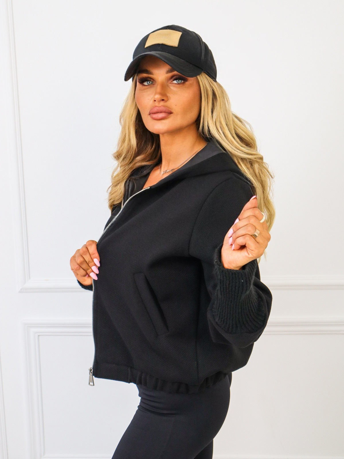 KURTKA Z KAPTUREM I DŁUGIM ŚCIAGACZEM NA RĘKAWIE- CZARNA