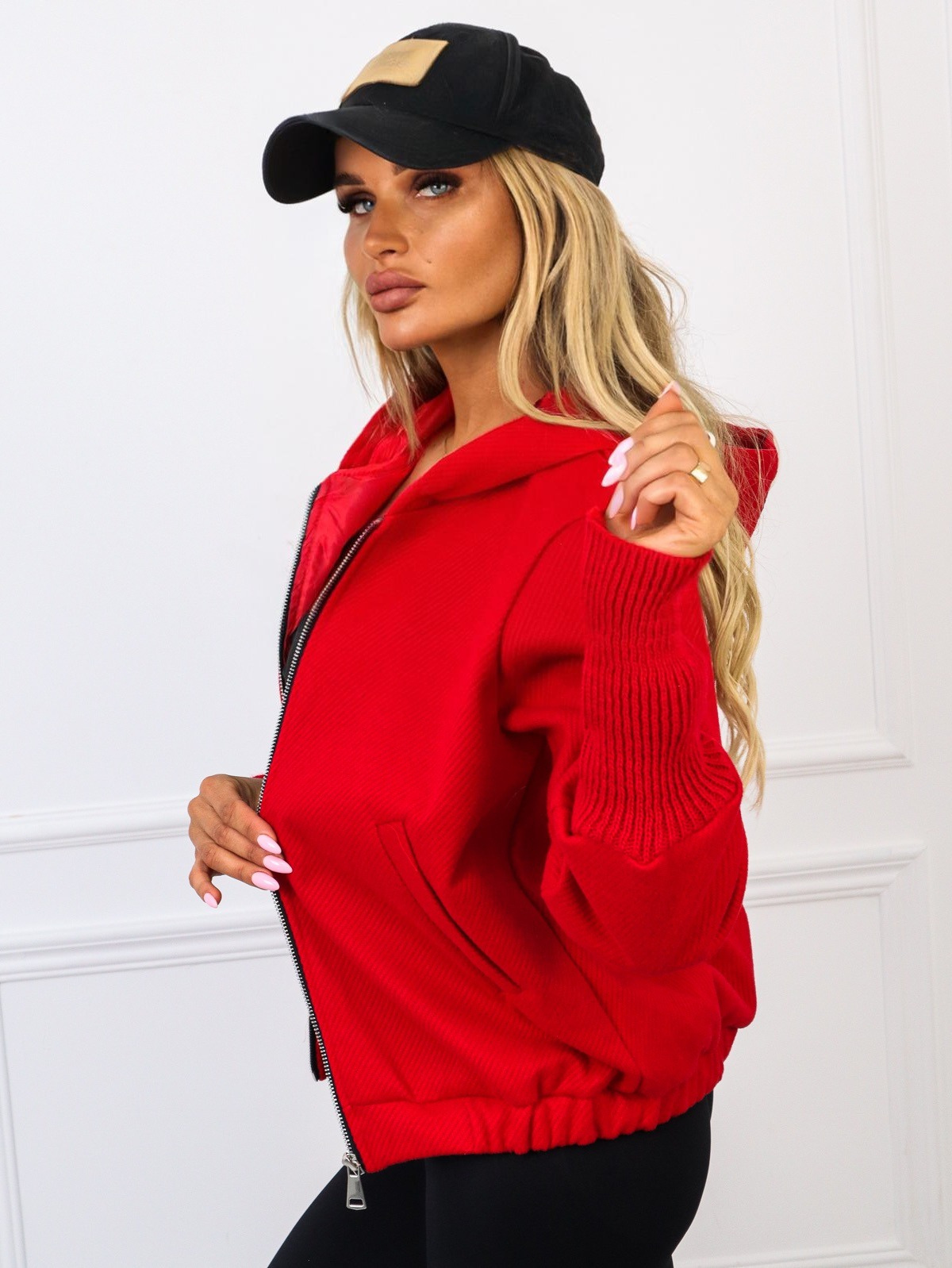 KURTKA Z KAPTUREM I DŁUGIM ŚCIAGACZEM NA RĘKAWIE- CZERWONA