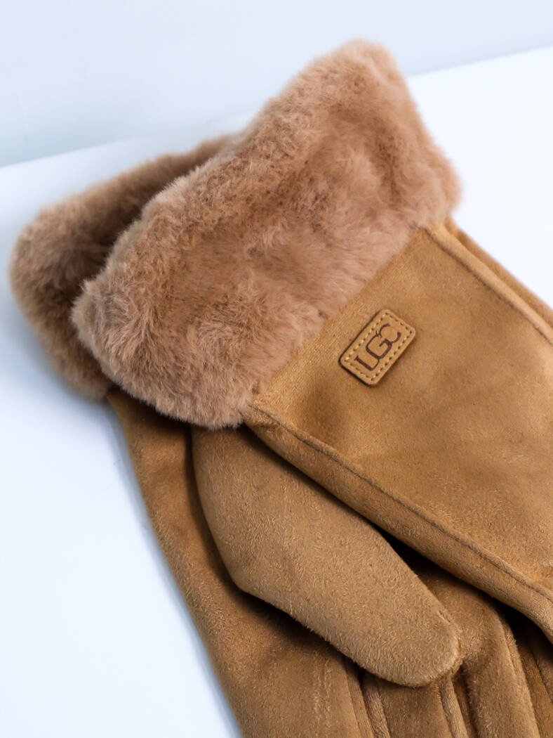 RĘKAWICZKI PALCZATKI Z FUTERKIEM Z LOGIEM LGC- BRĄZOWE
