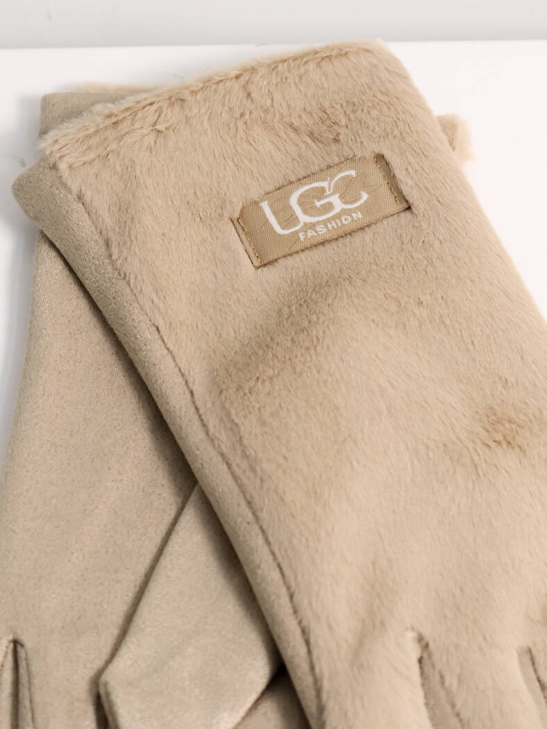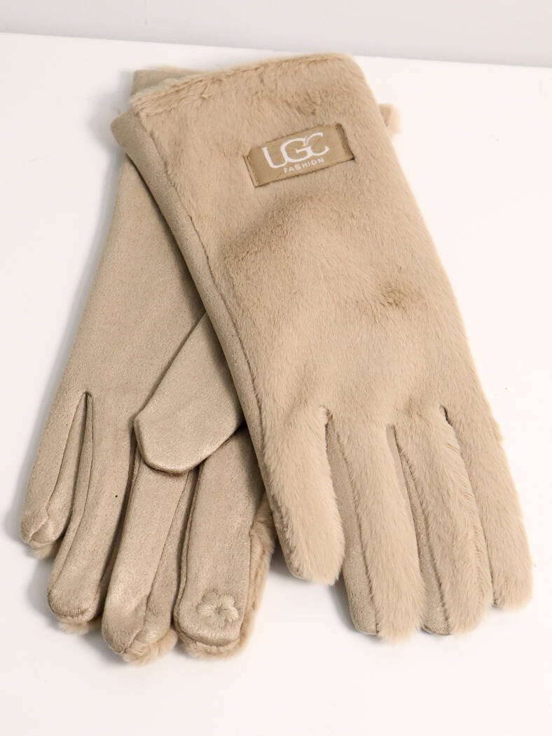 RĘKAWICZKI ZAMSZOWE Z FUTERKIEM PIĘCIOPALCZASTE Z LOGIEM LGC- BEŻOWE