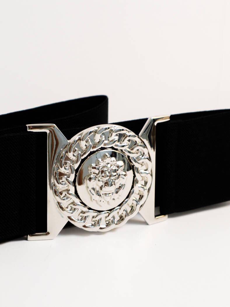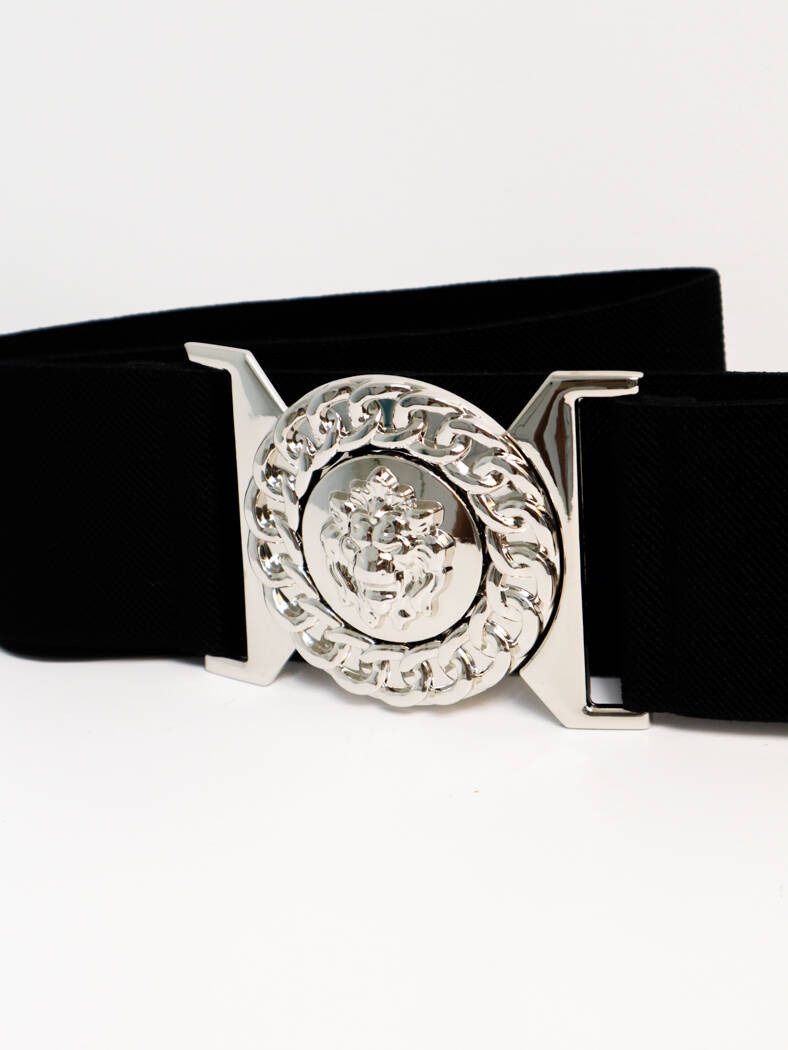 PASEK Z SZEROKA GUMĄ I KLAMRĄ Z LWEM- CZARNY