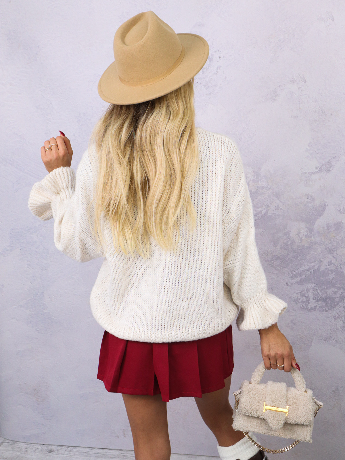 SWETER PLECIONY RĘKAW ZAKOŃCZONY FALBANĄ- BEŻOWY