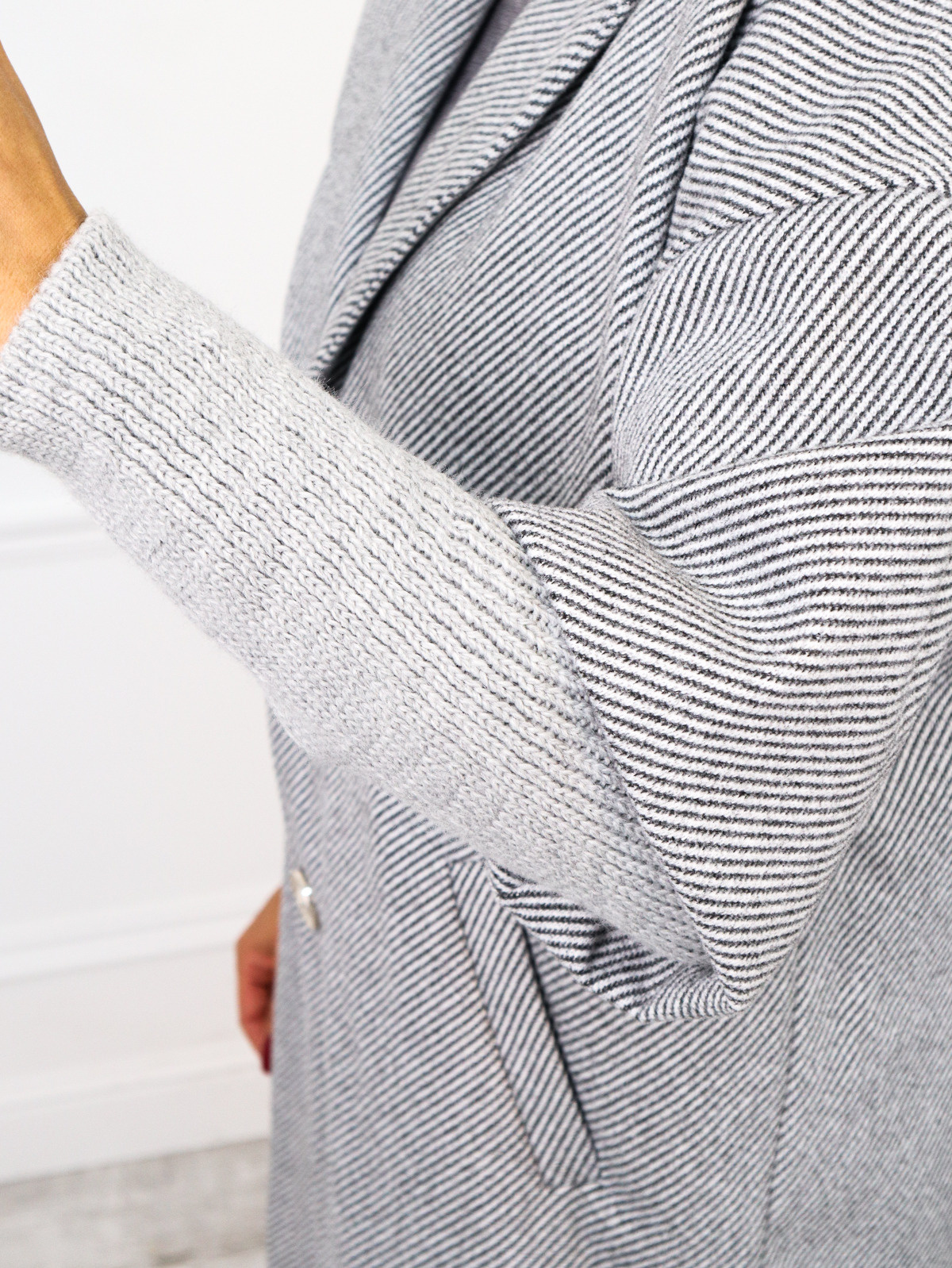 PŁASZCZ OVERSIZE Z DZIANINOWYMI RĘKAWAMI- SZARY