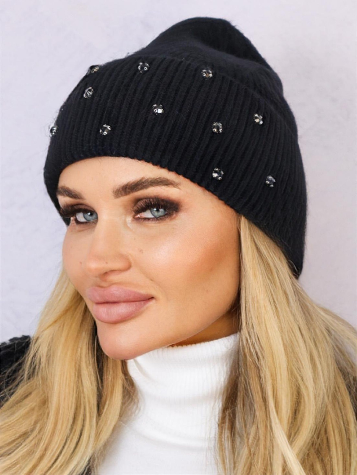 CZAPKA ZIMOWA Z CYRKONIAMI- CZARNA