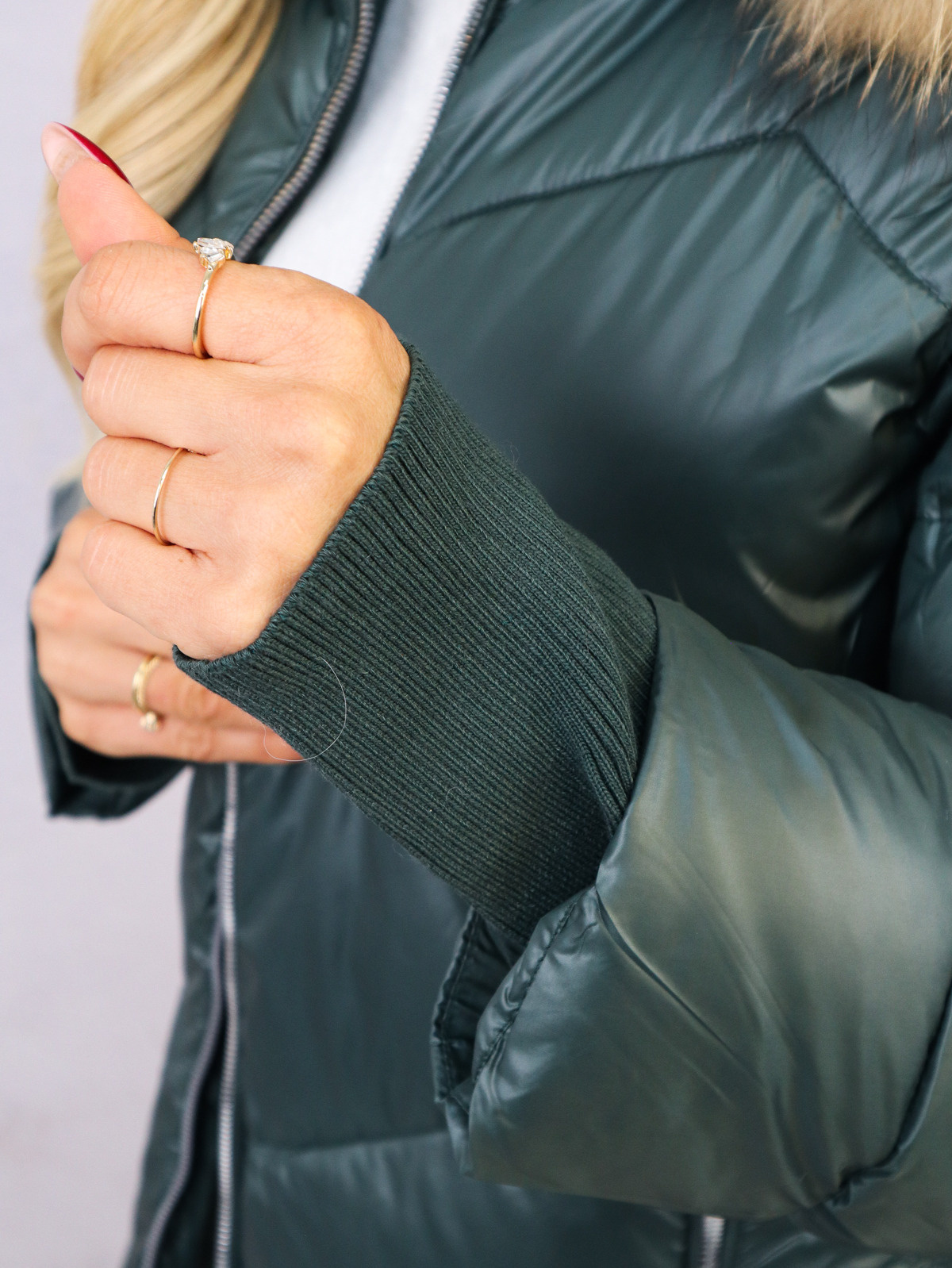 DŁUGA PIKOWANA KURTKA Z KAPTUREM- ZIELONA