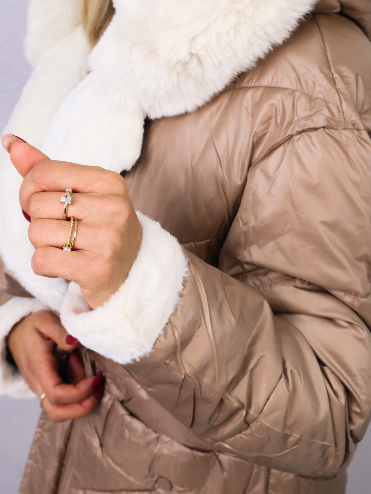 KURTKA PIKOWANA PUCHOWA Z FUTERKIEM NA RĘKAWACH- BRĄZOWA
