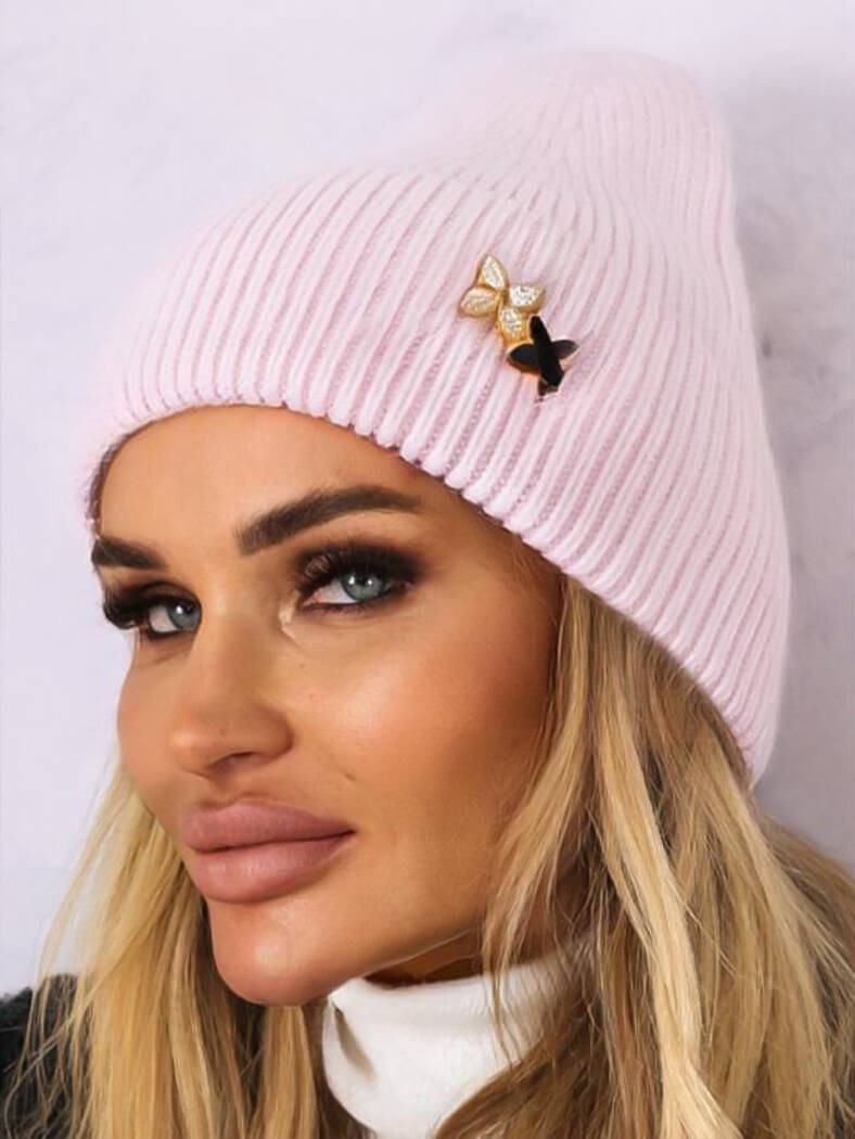 ZIMOWA CZAPKA Z BROSZKĄ W KWIATY- RÓŻOWA