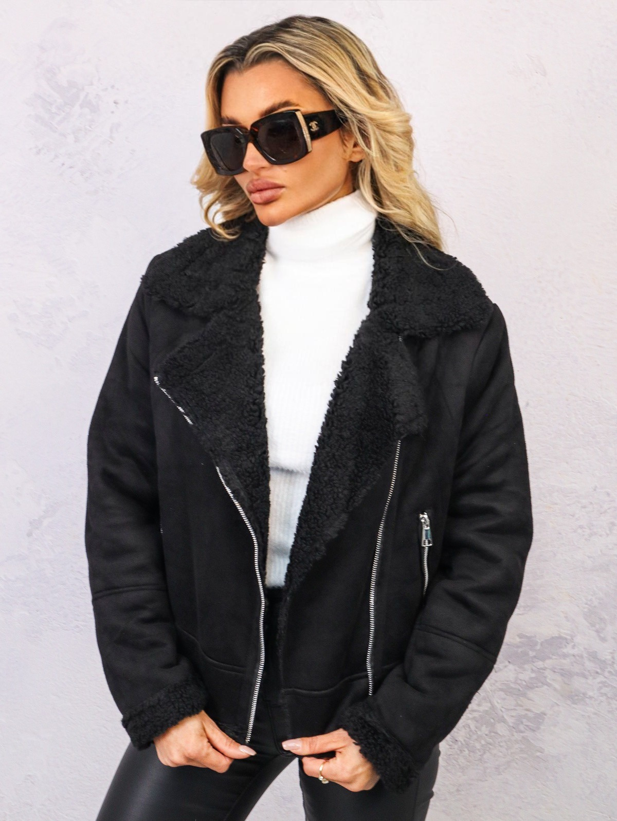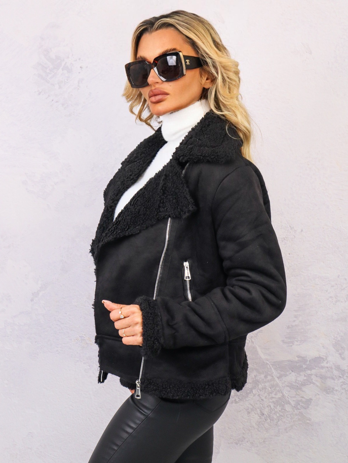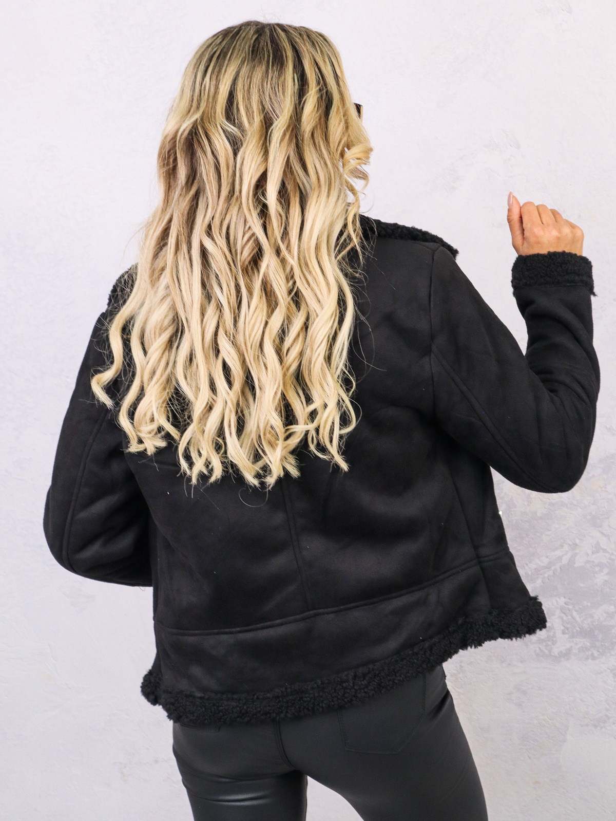 ZAMSZOWA KURTKA Z KOŻUCHEM- CZARNA