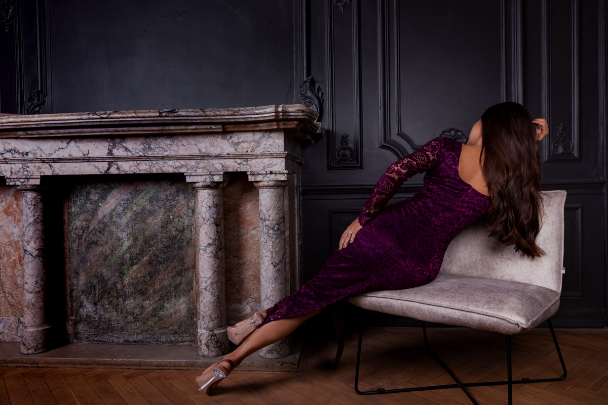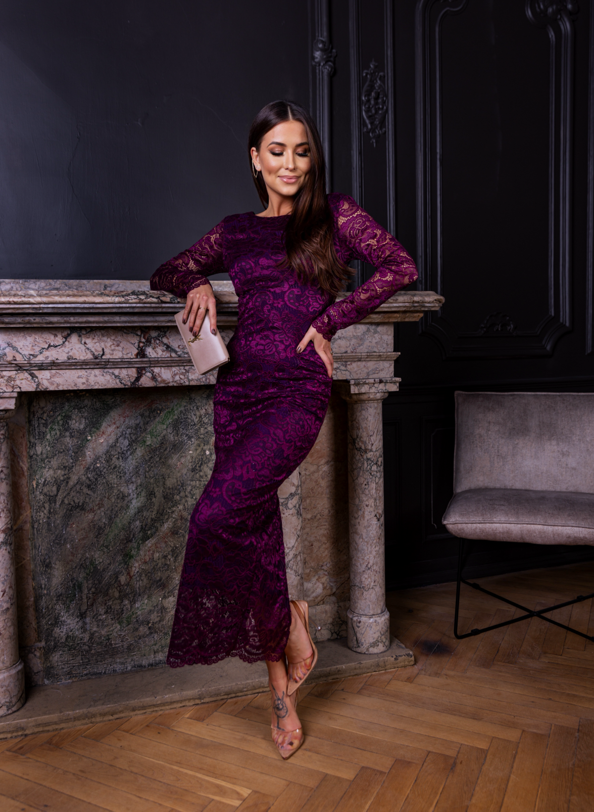 KORONKOWA SUKIENKA MAXI Z WYCIĘCIEM Z TYŁU- BORDOWA